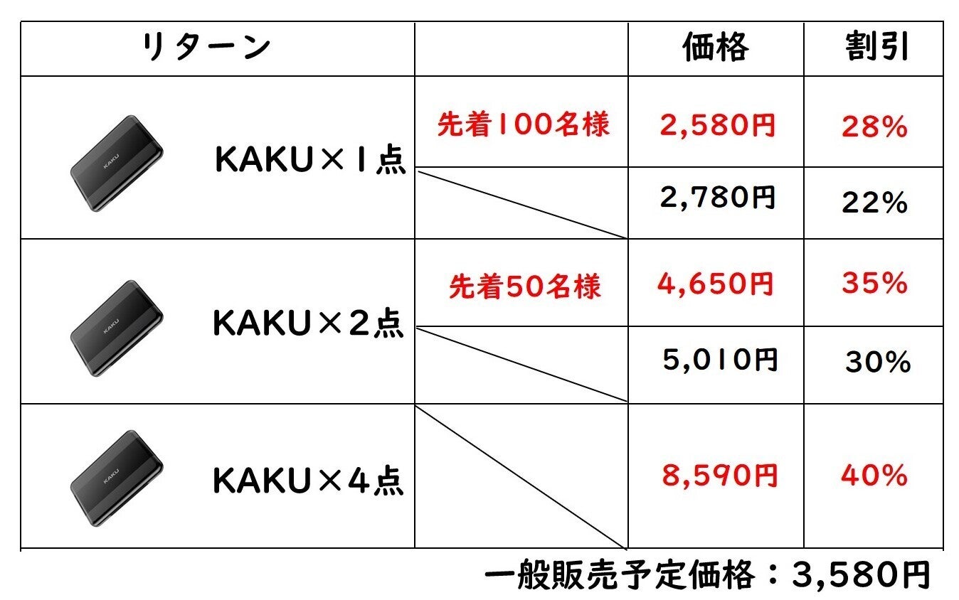 ※ リターン価格とは別にCAMPFIREのシステム利用料として