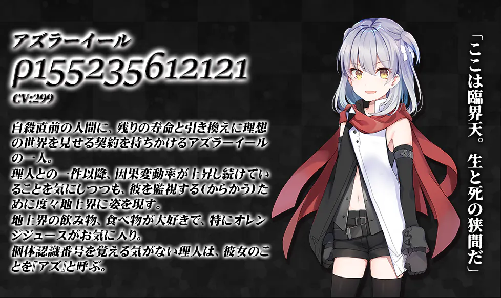 キャラクター、世界観、用語、楽曲、時系列などの解説、シナリオに隠された伏線や小ネタなどを収録した、臨界天のアズラーイールの全てを理解できるデジタル設定資料集です。