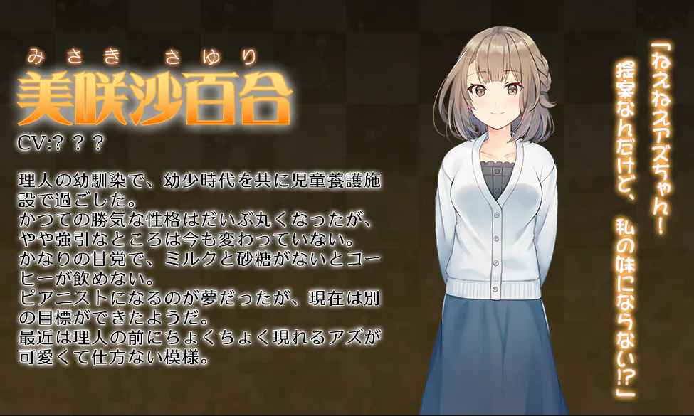 今後も→Quantize_は完全オリジナルなシナリオ、キャラクターデザイン、音楽でノベルゲームという媒体で作品を発表し続けます。