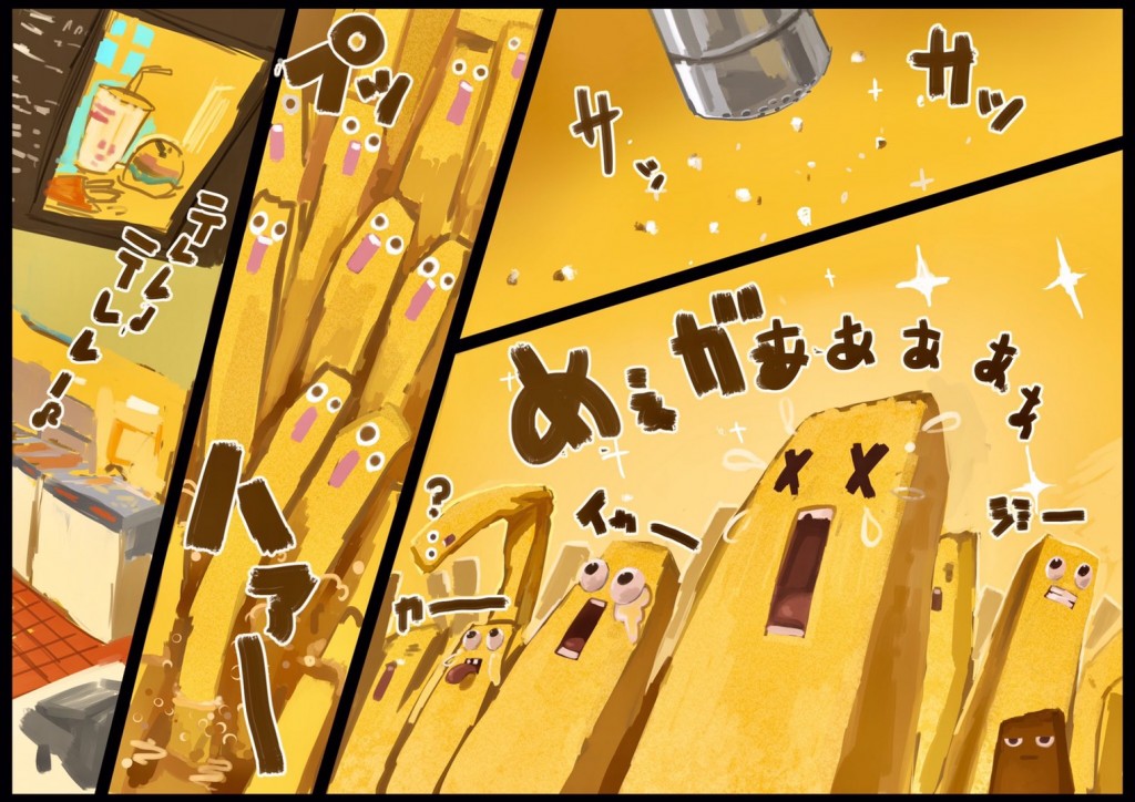 勉学に励む時間、お仕事を頑張る時間、そんな日常にふとポテトイットを見た時にほっこりするようなひと時をお届けしたい、そんな思いから製作しました。