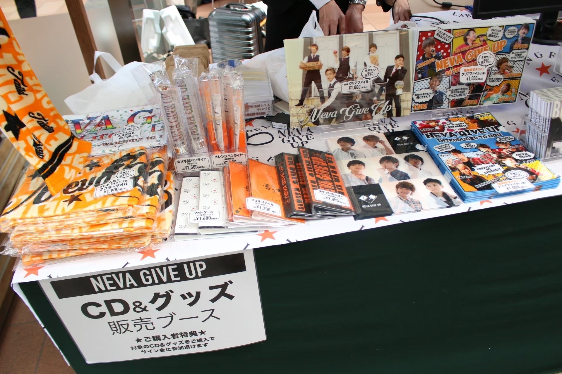 NEVA GIVE UP [あきらめない]という言葉をモチーフにしたトートバッグやTシャツなど、普段からお使いいただきやすいアイテムのほか、Newアルバムを絡めた様々なプランをご用意しました。