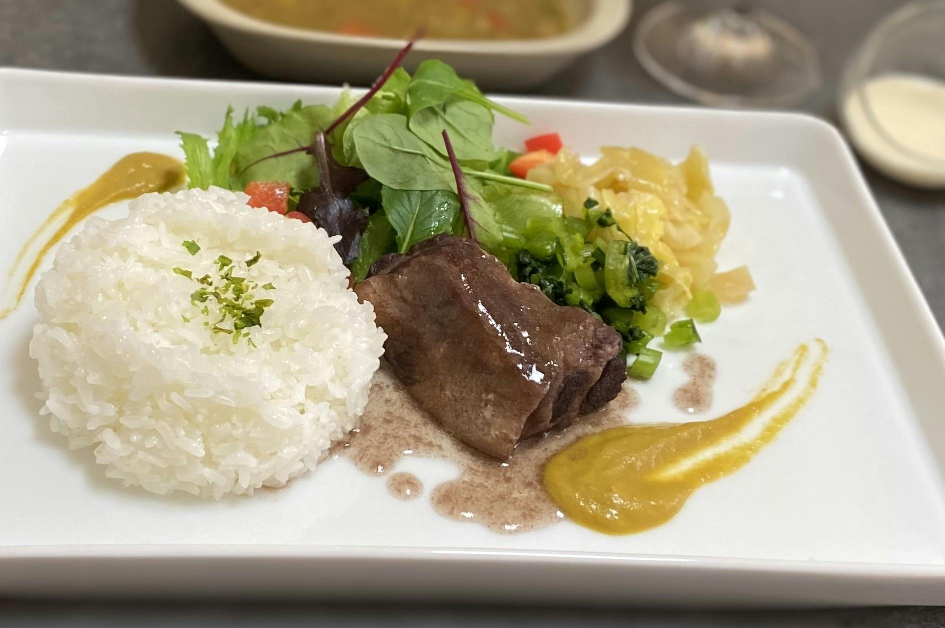 写真は豚の赤ワイン煮 香味野菜のピュレ