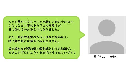 健康な食事の他に「笑顔が免疫力を高める」という研究結果があります。人と関わり笑顔になれるカフェの存在も、健康であることの一助になると思っています。