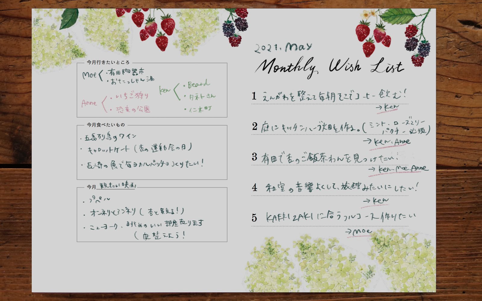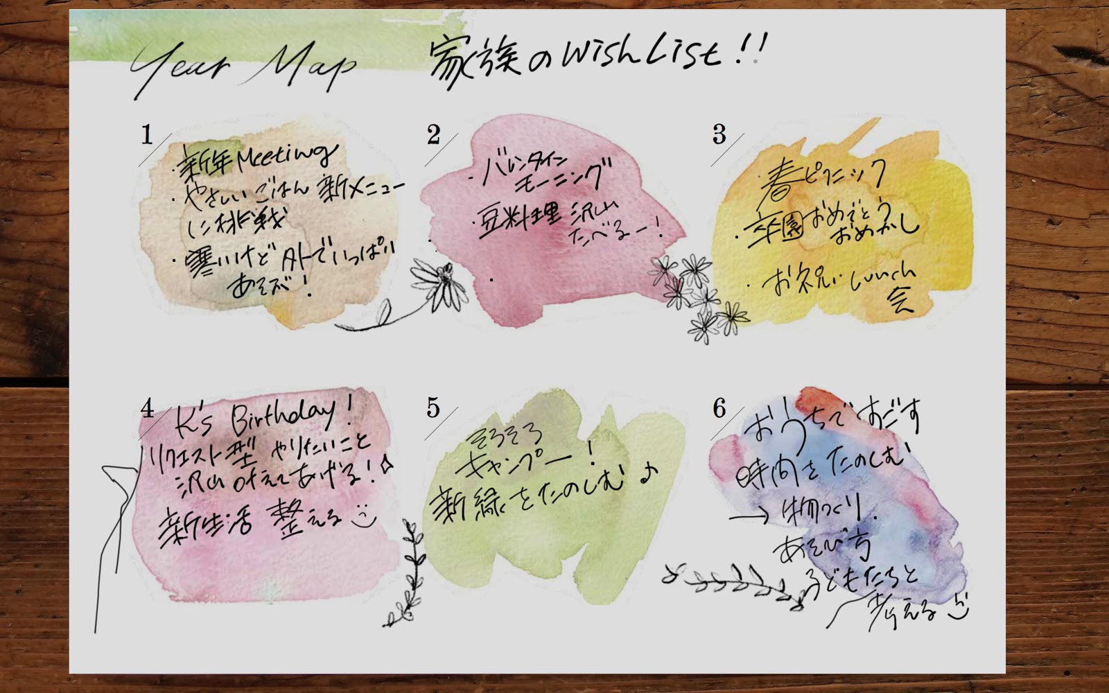「どんな季節も楽しみ尽くせるよう、家族で叶えたいWISH LISTを書き込みました」