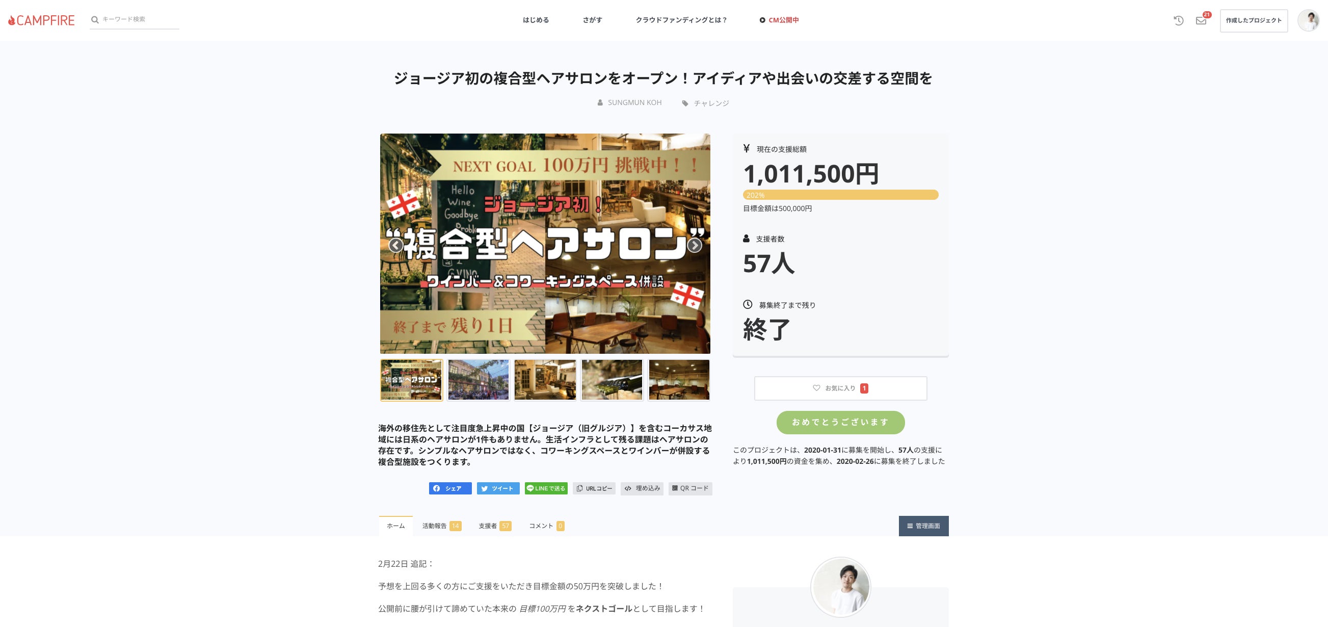 2021/02/25 21:060.22BTCのご支援をいただきました。まずはKenji Sasakiさんに感謝です。ジョージアのノマドの聖地が大幅に延命されました。パンデミックに起因するジョージアのローカル経済へのダメージにより存続をかけた1週間のクラウドファンディングプロジェクトは残り2日となりました。ジョージアのノマドの聖地を存続させたい!|CAMPFIRE現在の達成率は172.8%(プロジェクトページ表示支援総額+暗号資産暫定支援額101万円)。ご支援いただいた49人のみなさん、ありがとうございます。引き続きより多くの方にご支援いただけるよう、尽力していきます。そんな中で、なんだか「ビットコイン100万円の支援があったのにクラファン続けるのゲスいな」と感じるひともいるようです。仲良いひととか応援してくれてるひとがそれでテンション下がるのはなんか悲しいので思想構造を書き出してみます。プロジェクトの金額ベースで言えば、マラソンで優勝が約束された先頭ランナーだとしても、応援してくれてるひとの姿を思い浮かべれば失速したりはしませんし、最下位が確定していても身を粉にして走り抜きます。ということで走り抜けます。「お金」と「ひと」2つの指標クラウドファンディングには大きく二つの指標があると思っています。・お金プロジェクトページの金額がなんであれ、クラウドファンディングは最終日まで全力で続けます。クラウドファンディング上の数字がサクセス“している”と“していない”だと、そりゃサクセスしていたほうがいいです。あと、単純に自分が応援側だったら大口支援があったからって一件落着してほしくない・・・「クラウドファンディングの本質、そこじゃないだろ」って思います。このプロジェクトは最低目標額を80万円と設定していますが、あまり上限のサクセスポイントがありません。公表しているように店舗維持費が月16万円なので、支援総額÷16=延命月数です。「あと4ヶ月でコロナがおわるよ!世界中からノマド戻ってくるよ!」と決まっていれば4ヶ月分なのですが、現在は入国者受け入れに前向きな流れでありつつも、このご時世なので先行きが謎です。いまのところおおよそ7ヶ月延命という状態です。7ヶ月後に世界のノマドが集まれる世の中になったらいいなー!・ひとぼくの気持ちとしては、支援者数を重要な指標にしています。経営として金額は大事だし、そりゃ一口100万円をご支援いただいたらとても嬉しいですが、「ひと」の指標において支援額は無関係です。とくに「ジョージアでコワーキングスペース利用と飲み放題の権利」を持ち続けることで、「いつか行こう」をより具体的にし、なによりその気持ちを忘れないリマインダーになるのです。・ジョージアを見て知って感じてほしい・日本以外で暮らす選択肢を引き出しに入れて、精神的な豊かさに変えてほしい・世界にはまだまだ色んなことがあると知ってほしいもとより発信していることにも付随して、このクラウドファンディングでもそんなきっかけを提供できればと思っています。まあ、利用権は経営上の都合で1万円なので松竹梅という意味ではないのですが、とにかく応援いただく人数が多いと、この一年間まったく痛くも痒くもないフリをして擦り減らしたメンタルHPが回復します!周囲の人が柔軟性とパッションのかたまりみたいな人ばかりなので、たいして誰も気にしていないと思いますが、100人に1人くらいに説明できればいいかなと思ってここに記させていただきました。予告最終日となる2月27日(土)21:00~24:00では、終了へのカウントダウンとともにLive配信を実施します。Twitter,Facebook,instagram,YouTube,Clubhouseの5つのプラットフォームで同時配信。配信の画面上にはCAMPFIREの達成率や、支援通知もメッセージとともにリアルタイムで画面上に反映されます。スペシャラナイゲストにも友情出演していただくので、あんまり期待ぜずお楽しみにしていてください。明日の活動報告で詳細にご案内させていただきます。最後にコロナ緊急クラウドファンディングプロジェクト「ジョージアのノマドの聖地を存続したい!」では皆さんのご支援をお待ちしております。残り2日と超短期のプロジェクトになりますが、どうか応援のほどよろしくお願いいたします。 もっと見る