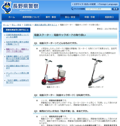 Qキックボード形態を警察では原付スクーターとして認めているのか?