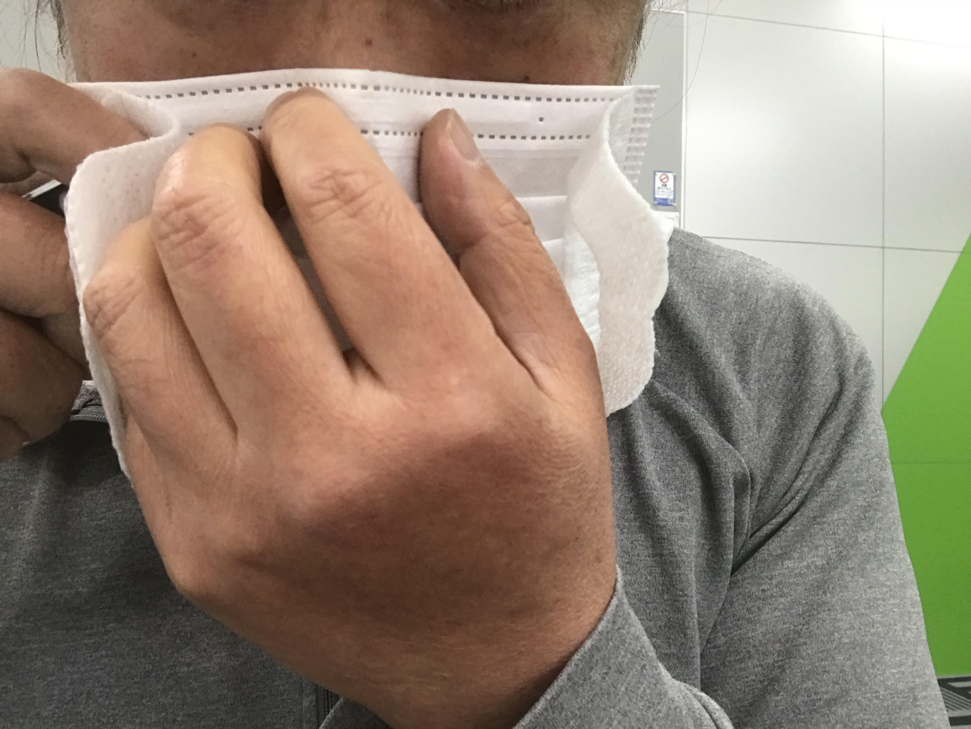 不織布マスクの鼻が当たるところを山折りに、その両横を谷折りにして装着すると、確かに少し息苦しいのですが、これはキチンとフィルターを通して呼吸している、と言う事の証拠でもあると思います。