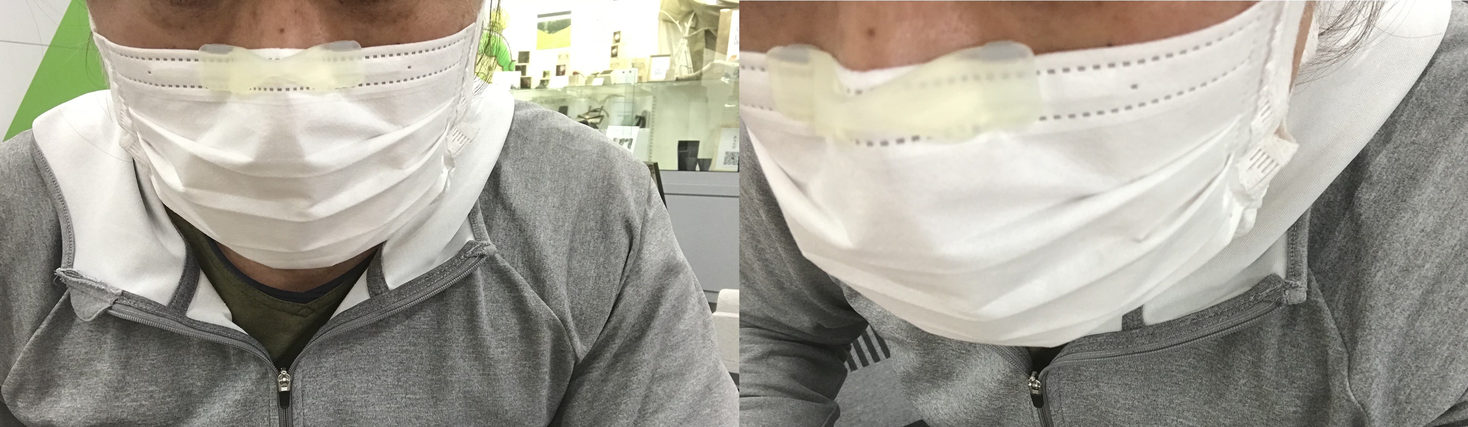 ただ、曲げている器材はプラスチックであることが多く、時間と共に元の真っすぐな状態に戻ろうとしますので、隙間もだんだん大きくなることがあります。それに伴ってマスクのズレも起こり、しょっちゅうマスクを掴んで位置を戻している姿をよく見ます。特にマスクのまま喋っていると、直ぐにズレてきますよね。