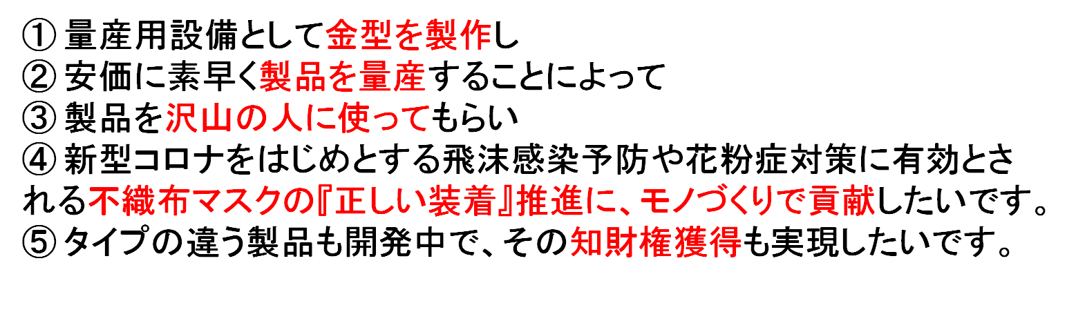 ならば折角着ける不織布マスクは効果的に使って頂きたい!その為にこの補助器具を役立てて頂きたい!モノ創り屋として切に、そう願っております。