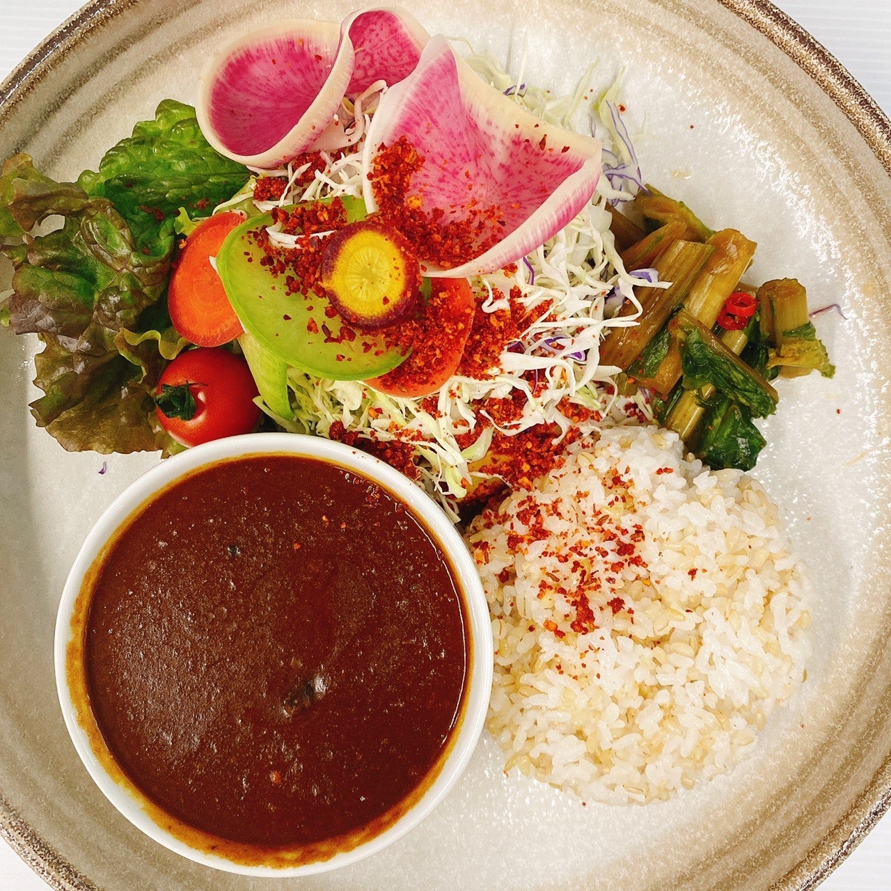 信州のお店が提供するカレーとあって、ソースには、りんごやセロリなど信州の野菜、蕎麦のかえしを使っており、食材の旨味が溶け込んだ、スパイス感がありながらも味わい深い仕上がりとなっています。