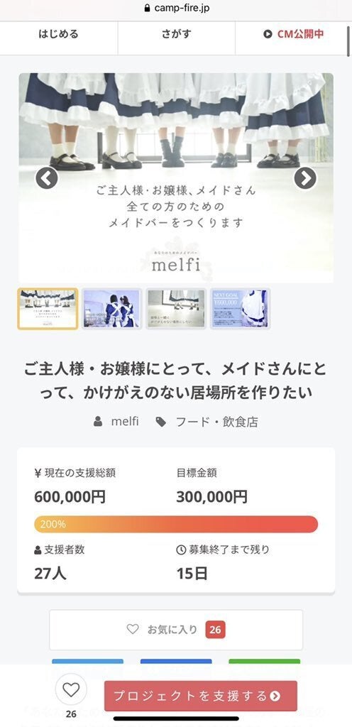 お世話になっております。無事クラウドファンディングが終了し、リターンも一部を除き発送も進んでおります。目標を大きく上回り達成しました。本当にありがとうございました。今回緊急事態宣言が発令されましたが、プレオープンパーティーは予定通り開催予定です。グランドオープンも変更なく予定していた5/1のままです。また、プレオープンパーティー 昼の部に古泉むむもお給仕になりました。ホームページもオープンしましたhttps://www.melfi.tokyo/よろしくお願い致します。