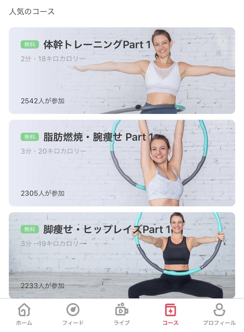 コースは様々で、フラフープの使い方以外にも様々なトレーニング内容が