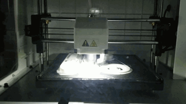 設計が終わると、次に試作の工程です。今回の製品は3Dプリンターでの試作です。