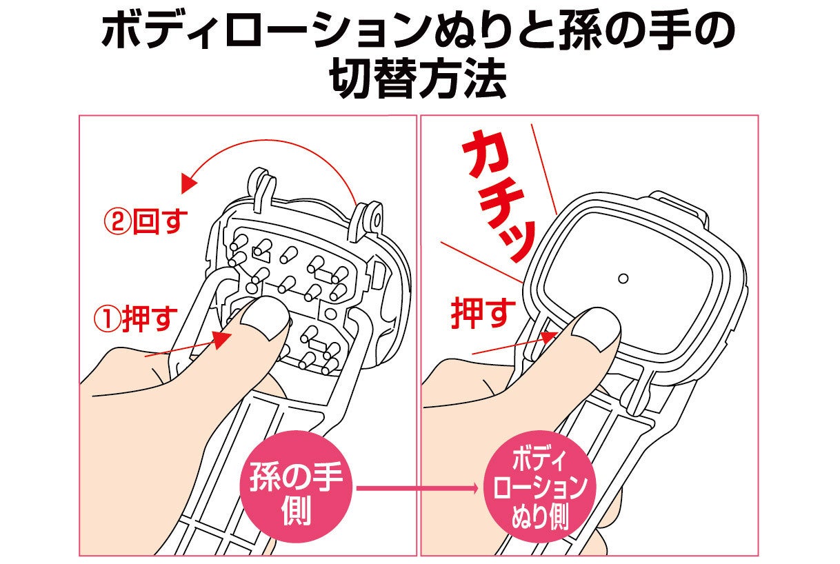 ”ボディローション塗り(左画像)”の反対側は”孫の手(右画像)”になっているので、とても便利です。