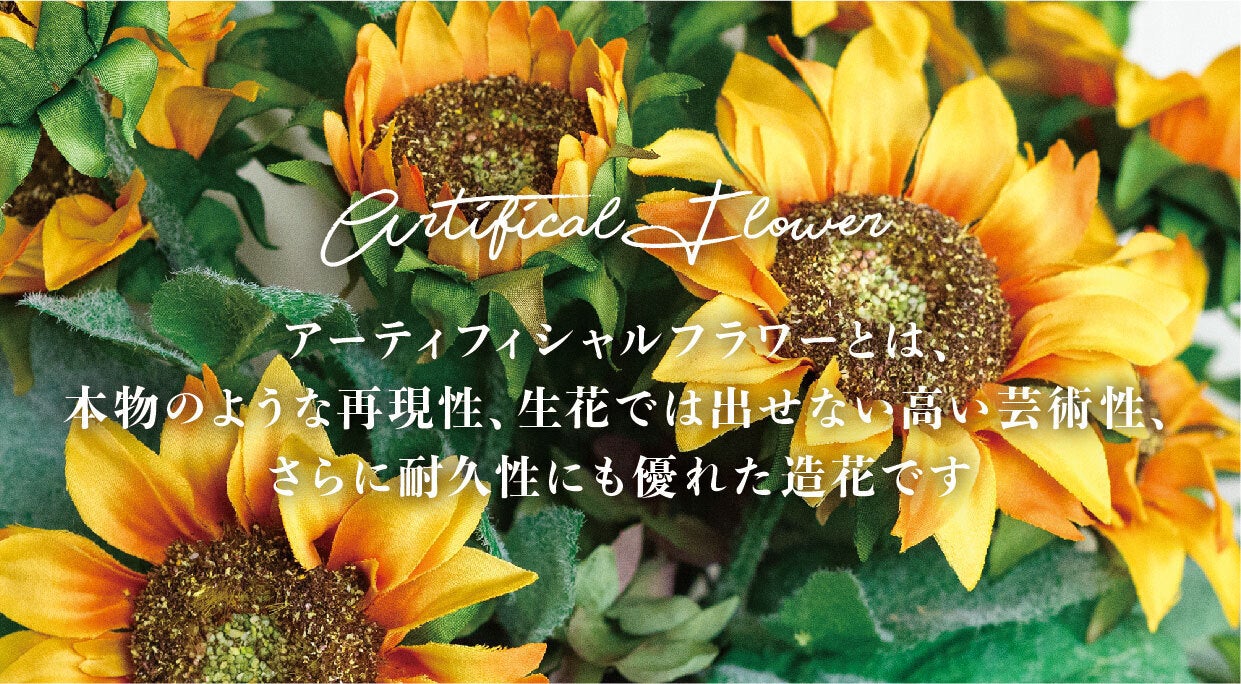 アーティフィシャルフラワーとは、生花を限りなくリアルに再現し、高い芸術性・耐久性に優れた造花です。