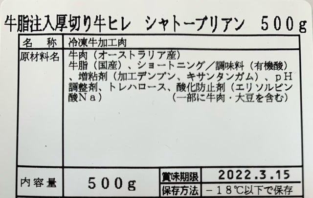 ②牛フィレ・シャトーブリアン・ステーキ(やわらか加工のインジェクションビーフ)