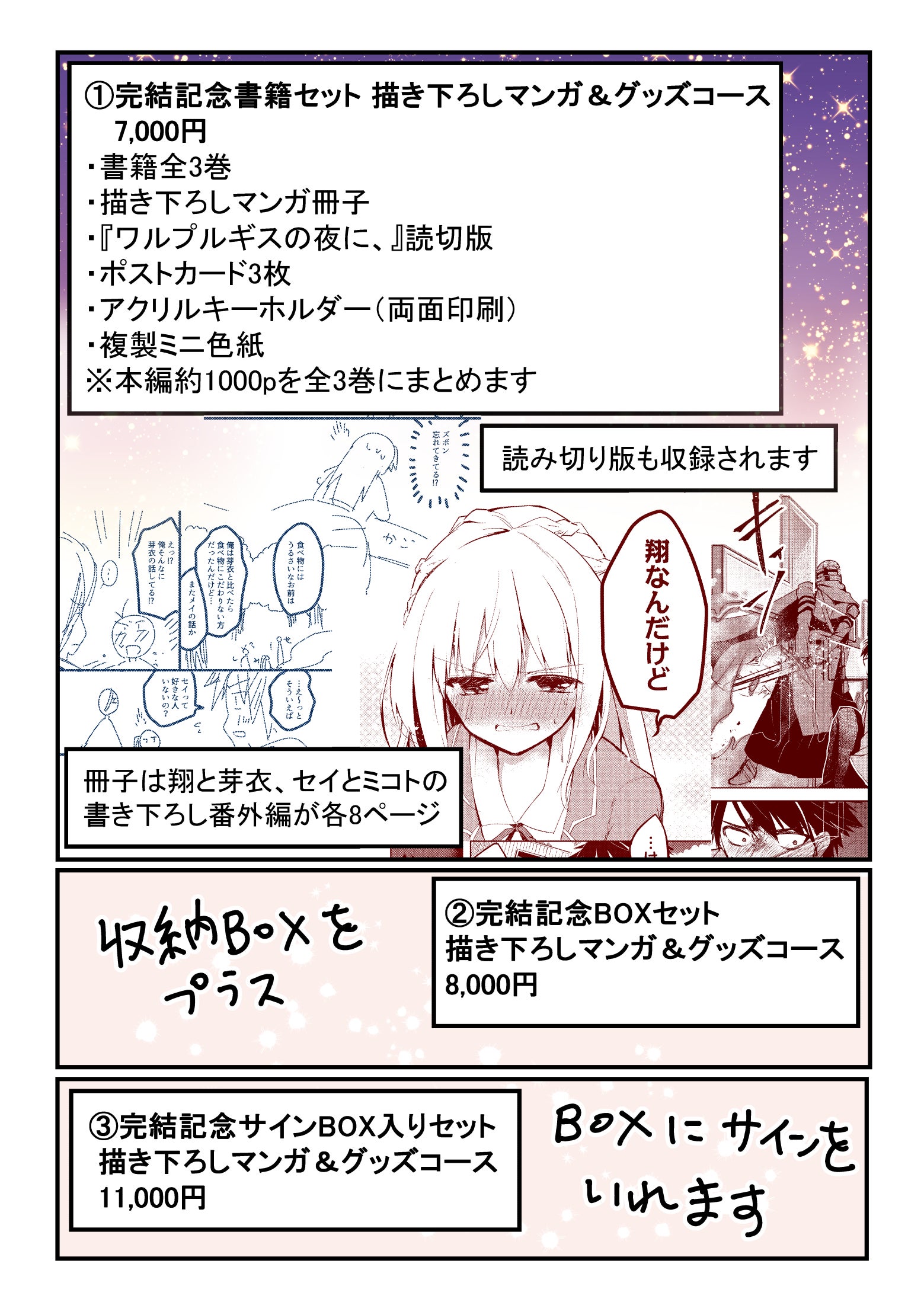 ③完結記念サインBOX入りセット 描き下ろしマンガ&グッズコース 11,000円 税込・送料込・数量制限無し