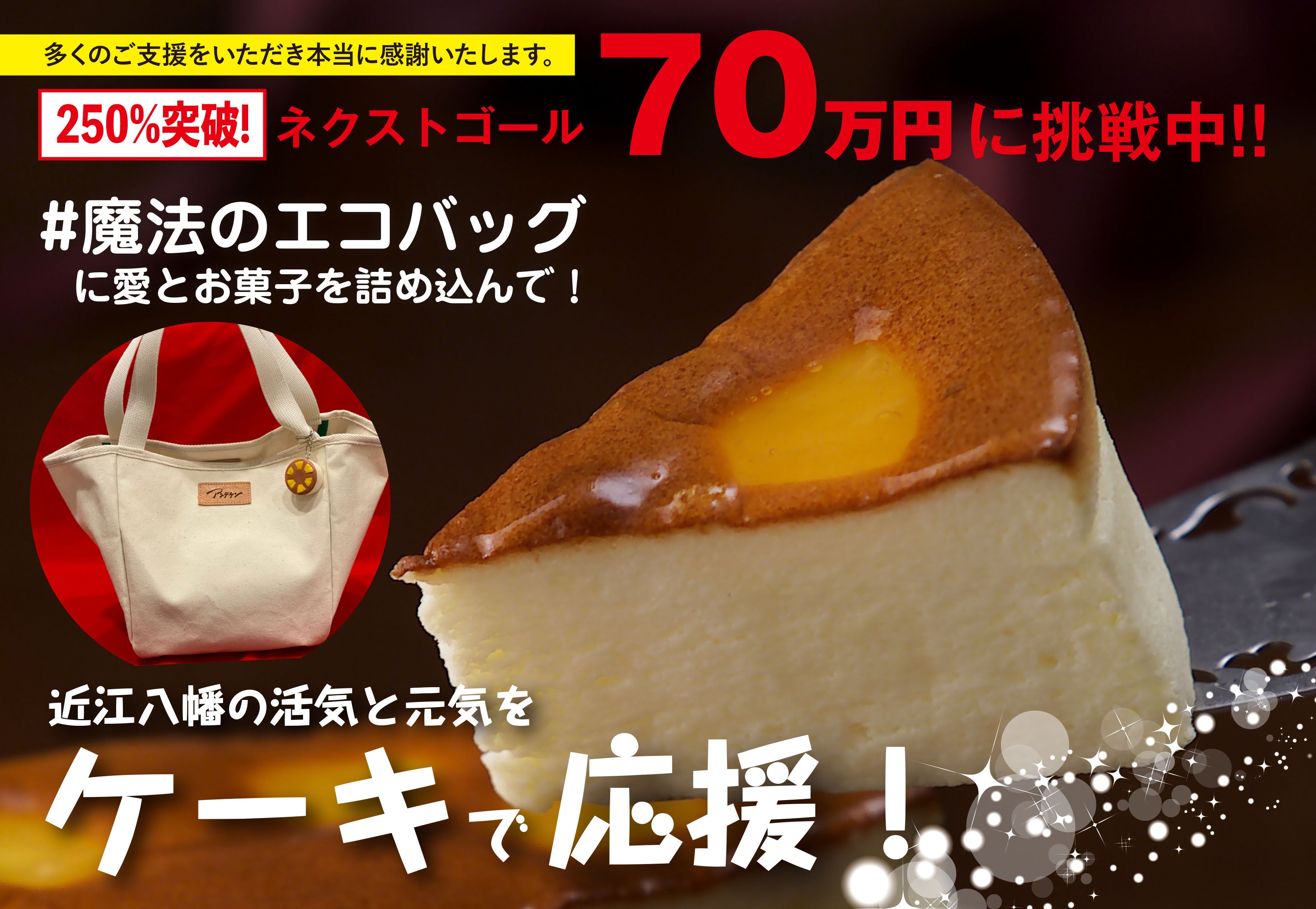 こんにちは! アンデケン廣田です! な、な、なんと! 本日、ネクストゴールの目標にしておりました 50万円達成いたしました。クラウドファンディングを始めてから数日経っていますが日々、応援のメッセージやご支援いただきありがとうございます。 エコバック使います!やアンデケンのケーキを楽しみにしていただいているメッセージをみると心が温まるとともに、 ご期待にお応えできるようこれからも変わらず努力を続けてまいります。 次のネクストゴールに向けて頑張ります。 ご支援・応援の程宜しくお願い致します‼‼‼