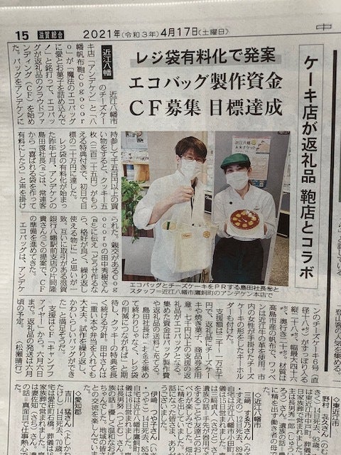 こんにちは!廣田です。 皆様たくさんのご支援・応援ありがとうございます!! 先日、4月24日(土)の京都新聞に エコバックとチーズケーキとともに掲載していただきました。 ご一読いただけますと幸いです。 あっという間に募集終了まで43日‼‼‼ まだまだ最後までネクストゴールに向け挑戦中です! これからもよろしくお願い致します。