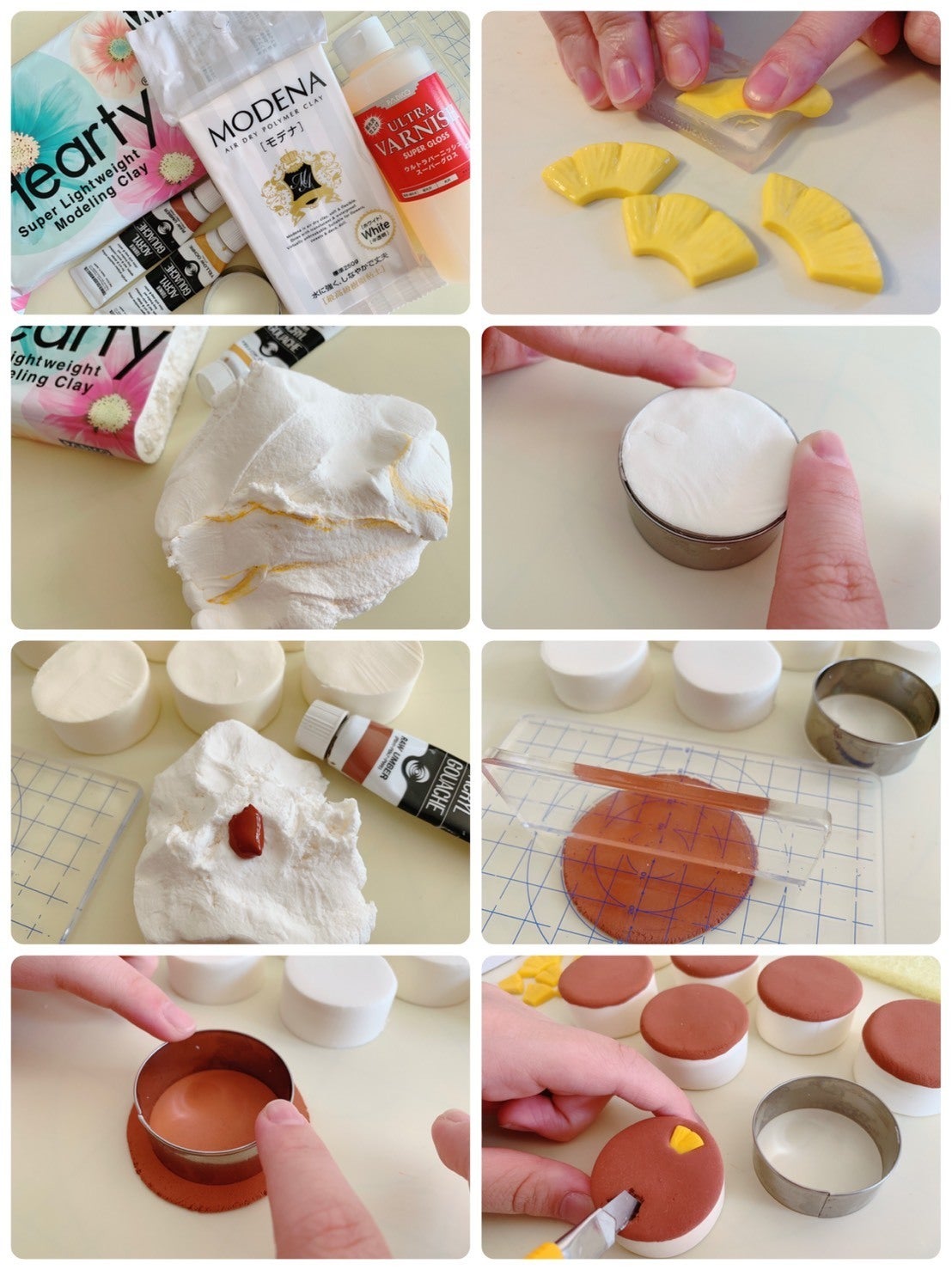 こんにちは。初めまして!! 今回アンデケンさんに声をかけて頂き『魔法のエコバック』プロジェクトに参加させて貰ってます『手作りスイーツデコ』~neemaです。 チーズケーキのキーホルダーを作らせてもらってます。 neemaは『リアルで綺麗め★』をモットーに近隣地域で委託販売、フリマ、手づくり市、ワークショップ等々で2011年より活動しています。 最近はコロナ禍で活動出来る場も制限されてしまいましたが『全てのパーツは手作り!!』で制作しています♪ お客様にはよく『え?!全部手作りなんですか?』と驚かれるのですが…… 今回のチーズケーキも、モチロン全て一から作ってます。 フワフワスフレの生地も、パイナップルも、最初は真っ白な粘土なんです。 耐水性に優れた樹脂粘土に、耐水性のアクリル絵の具で色を付け、仕上げにニスを塗ることで更に強度を付けています。 私たちが作ったチーズケーキキーホルダーが〝チョコン〟とついた『魔法のエコバック』…どうか、沢山のお客様に愛されますように……(★˘艸˘★)