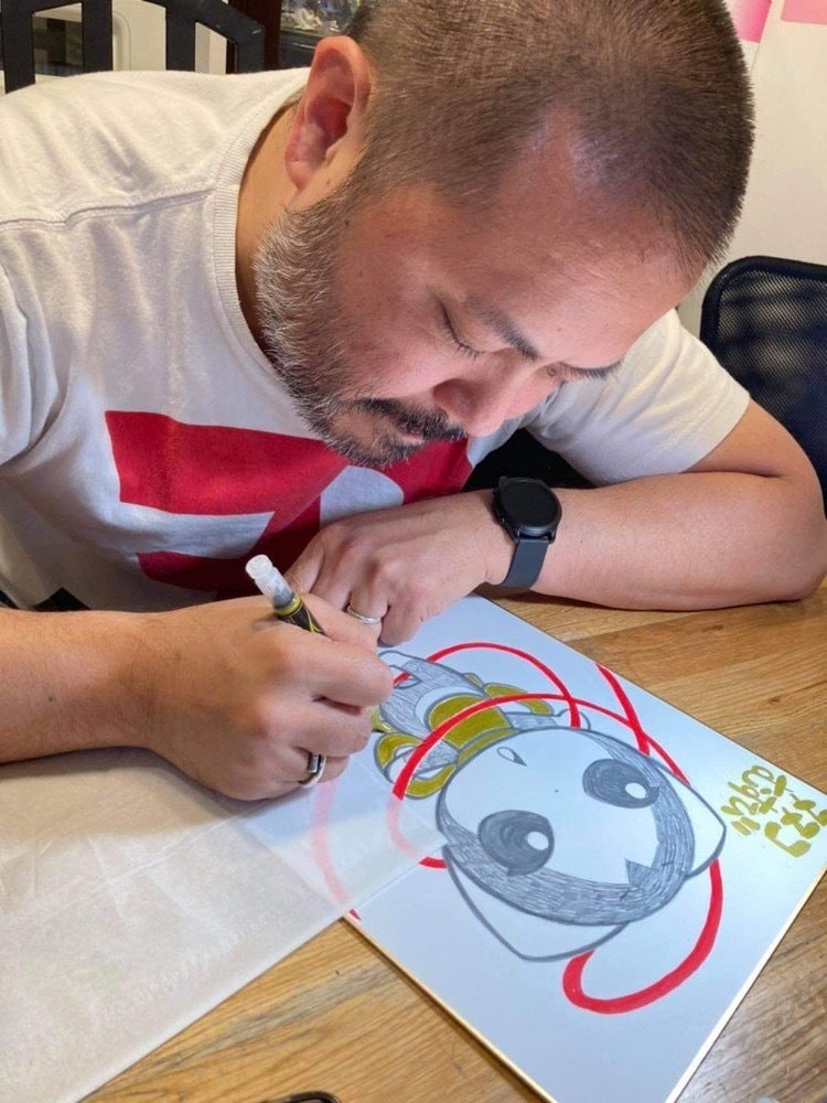 1974年生まれ。福岡市出身。キャラクターデザイナー。世界的スポーツ大会のマスコットをデザイン。夏はアロハシャツ、冬はどてらがトレードマーク。「クマーバチャンネル」が、 「日本キャラクター大賞2021」にてニューフェイス賞を受賞したクマーバをデザイン。
