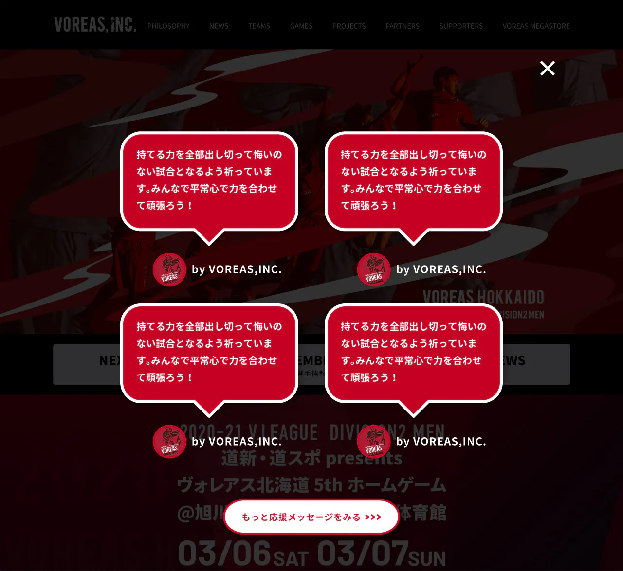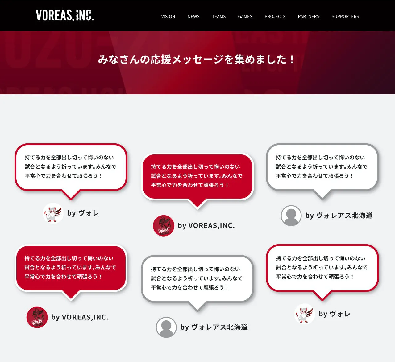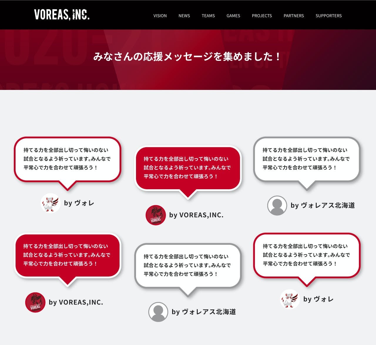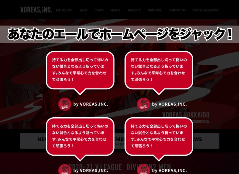 そこで今回、VOREASのホームページ上に特設サイトを作成し、皆さんのエールを集め選手に届けるクラウドファンディングを立ち上げました。