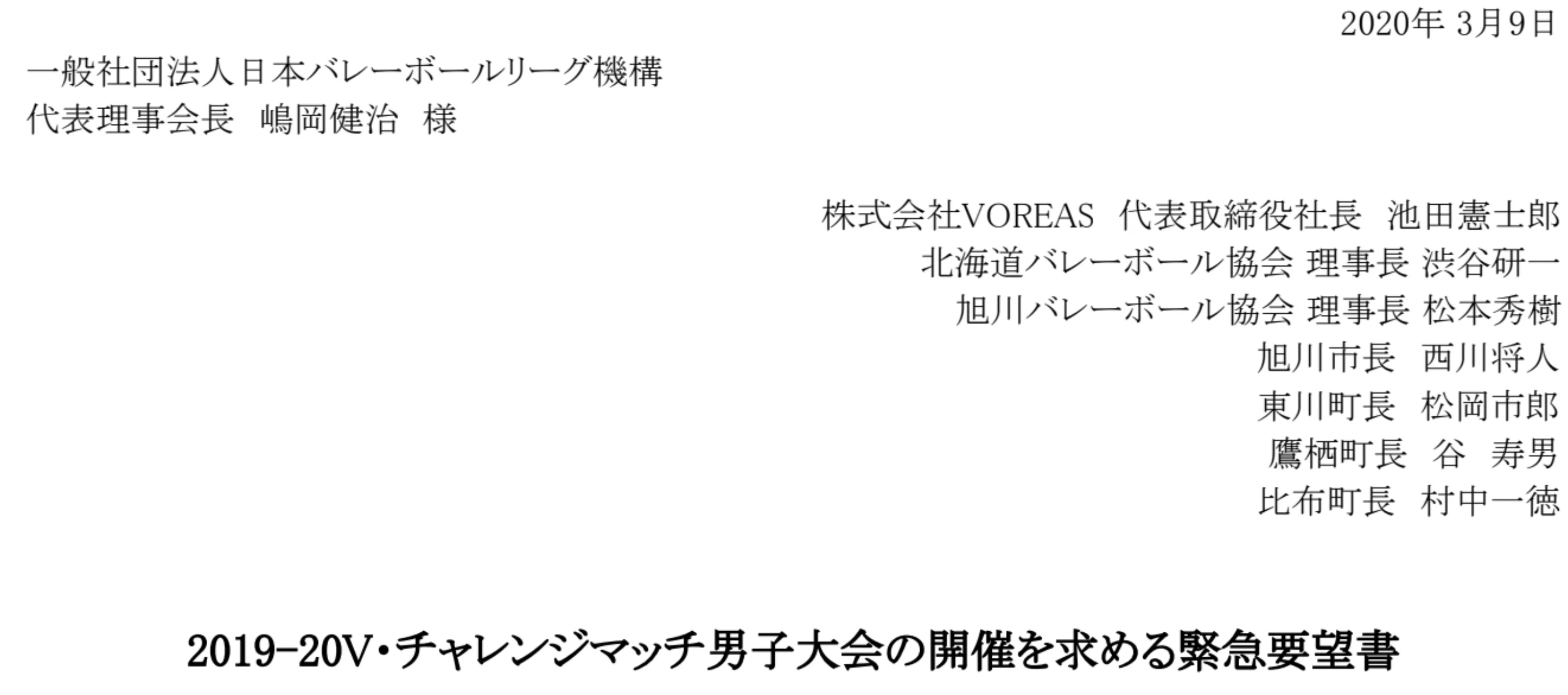 急遽東京に出向き、Vリーグ機構へ緊急要望書を提出