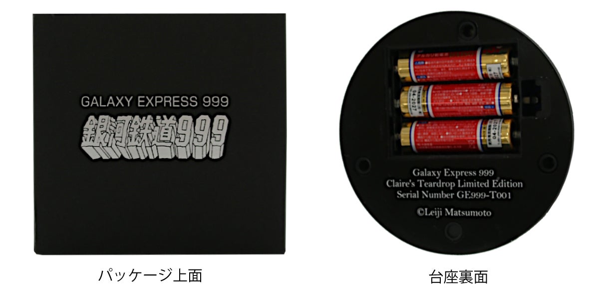 パッケージロゴは涙のフォルムにしました。上面にはTVアニメシリーズの「銀河鉄道999」のロゴとなります!
