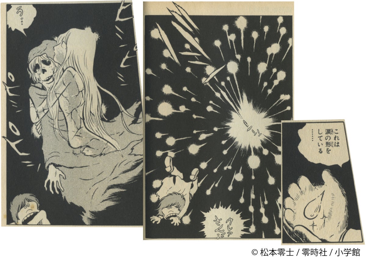鉄郎を救う為にバラバラになってしまったガラスのクレア。※小学館ビッグコミックスゴールド「銀河鉄道999」第1巻参照