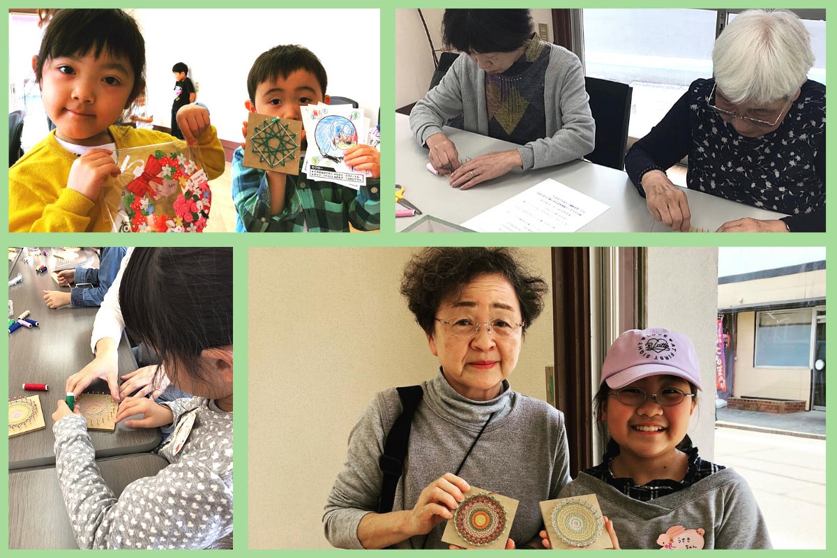 【糸かけ】イベントには、老若男女多くの方にご参加いただき、どの方も自分の作品が出来上がることに喜びと自信が芽生え、作品を通して、たくさんの笑顔とコミュニケーションが生まれました。