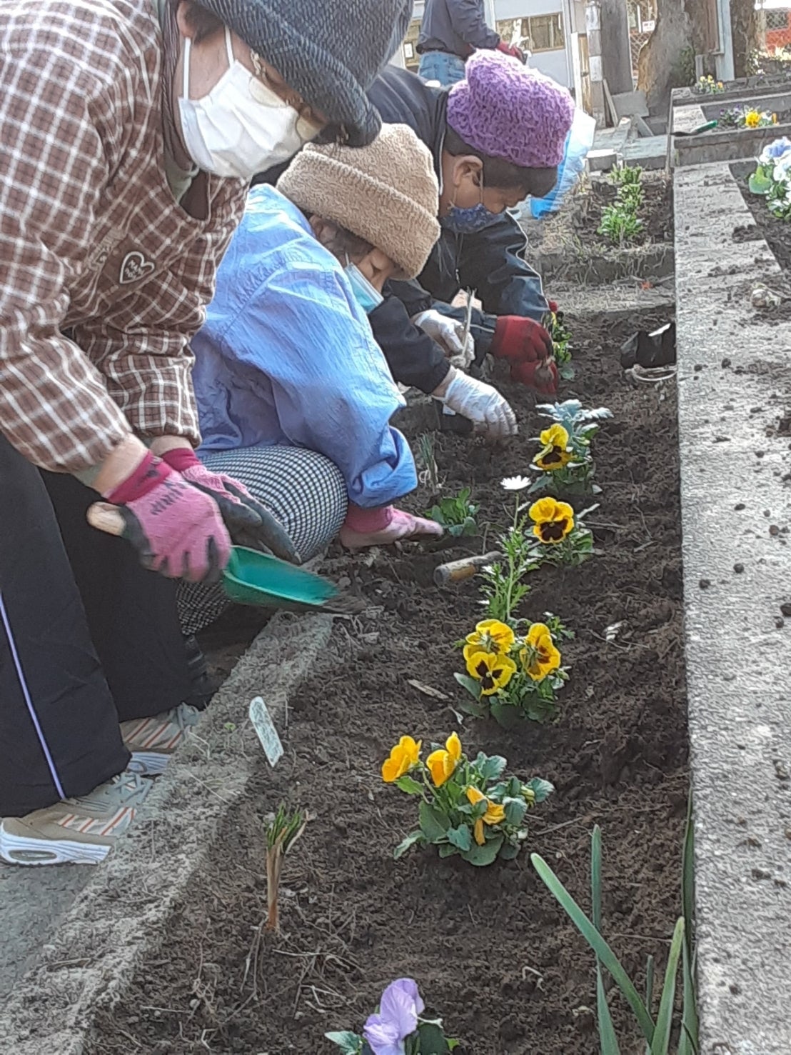 土砂に埋もれた花壇を被災後、村民の方々と一緒にもう一度花の咲き誇る花壇に。