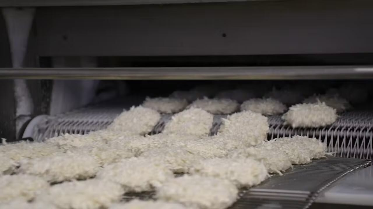 原材料名:鶏肉(タイ又は国産(5%未満))、大豆たん白食品(粉末状植物性たん白、でん粉)、プロセスチーズ、ナチュラルチーズ、食塩、米粉、砂糖、チキンコンソメ、食物繊維、衣(パン粉、でん粉、でん粉加工品、植物油脂)/加工デンプン、調味料(アミノ酸等)、pH調整剤、乳化剤、増粘多糖類、香料、(一部に小麦・乳成分・ごま・大豆・鶏肉・豚肉を含む)