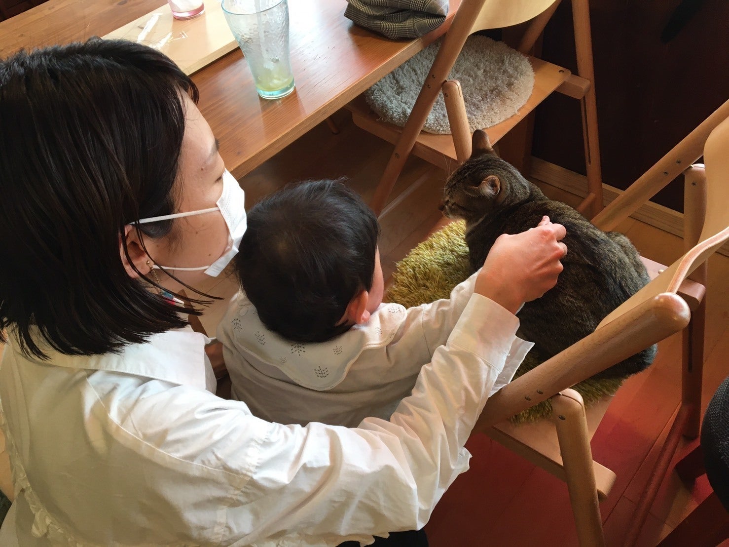 猫のいるスペースで猫を見ながらお食事。油断してるとパンをくわえて走っていきます。猫通の人は急いで食べてお皿を返しに来てくれます