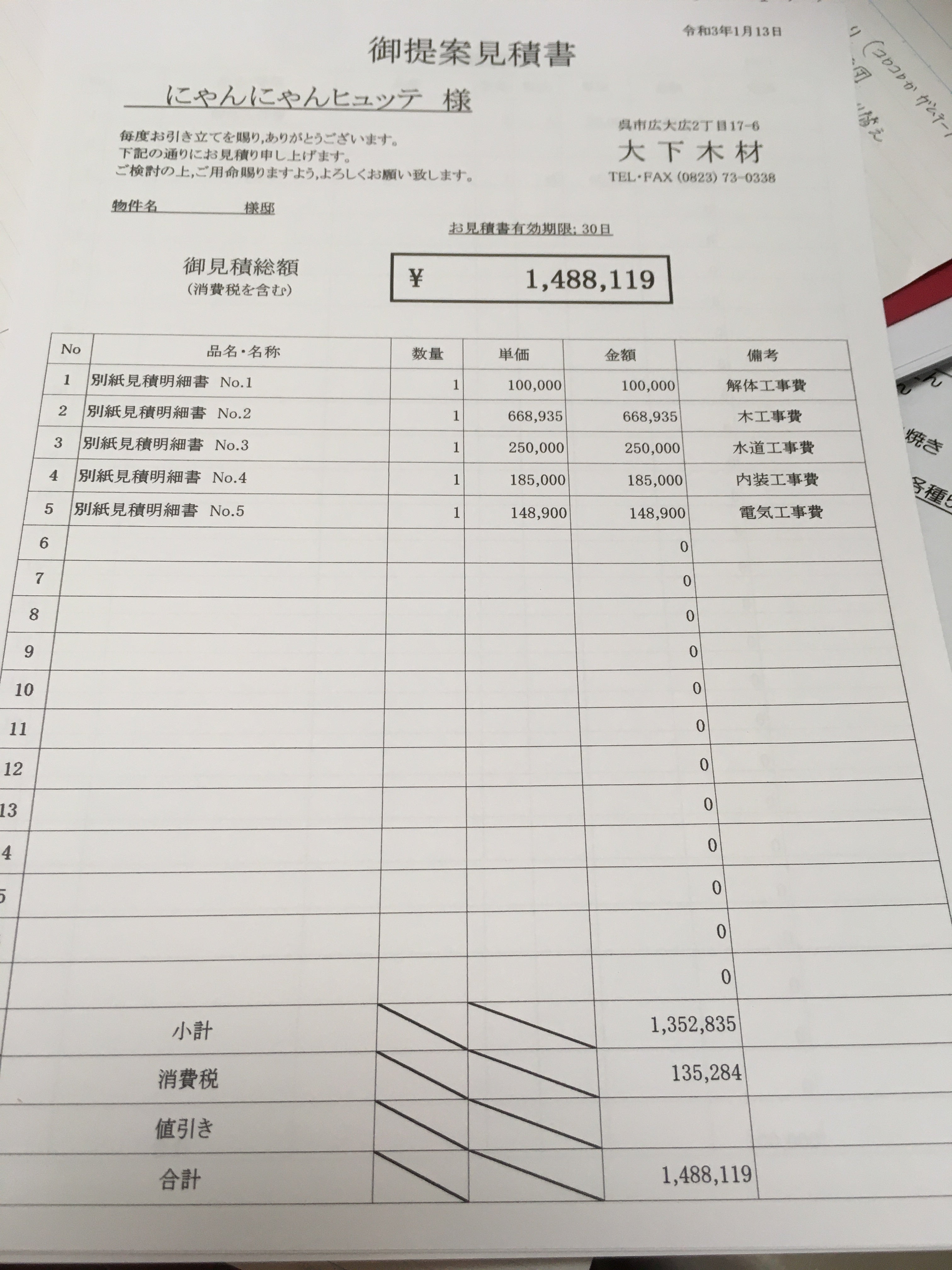 改装費用の見積もりです(以前記入したものの保存ができてなくて公開できてませんでした、すいません)見積総額1,488,119円です。これは1月末申請した小規模持続化補助金の申請書の額です。解体・木工・水道・内装・電気などの費用です中にはコロナ禍での換気や工夫の見積もりもはいってますが残念なことに補助金は商工会議所の審査を経て東京に申請しましたが不採択になりました。3月4月の審査を待ち5月の採択で着工し経費をあげる計画だったのでその後の活動計画をあげることができませんでした。今後は経費をもう少ししぼって着工の計画を進めていこうと思いますその他猫の保護費として1,000,000円。合わせて2,500,000円クラウドにあげてました。昨年オープンしてから8か月、猫の治療・手術には455,900円かかりました。保護受け取りや譲渡・その他寄付金(お店のさい銭箱)は499,390円、ぎりぎりの状態です。寄付の呼びかけは絶えずしていますがこれが現状です。これについては方法を改善するよりないと思っています。今年度は多頭崩壊しそうな家の猫の保護依頼などあり、これには保護依頼の家からの寄付は無理だと思っていますが今困ってる必要としてる所の保護をやっていきたいと思っています。経営的にはコロナ禍なので客数は昨年より激減しています。これは企業での不要不急の用以外の外出が厳しくされているためで客離れではないです。朝こられたい方、仕事帰りなどの要望もありバイトをうまく使ってできるだけ営業しています。今は年中無休の状態です。なので人件費も少なからずかかりますので30分500円は770円に変更しました。経営的にはこれでコロナ禍は乗り切れています。赤字は出ない程度です。改装して広くすることは入店客数をコロナ禍でも増やせられますし、そこで猫の楽しめるものを増やせたら=人間の楽しめるものも増え、ますます「いやし効果」が両方に現れると思います。またコロナが落ち着いてる時は人が増えるのでのためにも密にならないよう面積があるほうがいいです。昨年は保護活動の準備もできてないのに依頼が次々入りどうしても選別しなくてはいけなくて可哀そうな子を守ってあげれない時もありましたが今年は改装してても保護活動はできるだけやり社会的にも猫カフェの必要性を訴えていきたいです。このままクラウドも終了となりますがその後の経過はHP・インスタグラム・Facebookなど皆さんが見れるように掲示していきたいと思っています。またネットの活用は不慣れなため連絡が遅くれる場合があります。ご迷惑をおかけします。