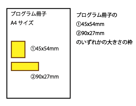 ・全国学生邦楽フェスティバル冊子の紙面の自由枠( ①横45x縦54mm、②横90x縦27mmのいずれか一つ)