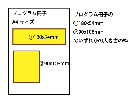 ・全国学生邦楽フェスティバル冊子の紙面の自由枠(①横180x縦54mm、②横90x縦108mmのいずれか一つ)