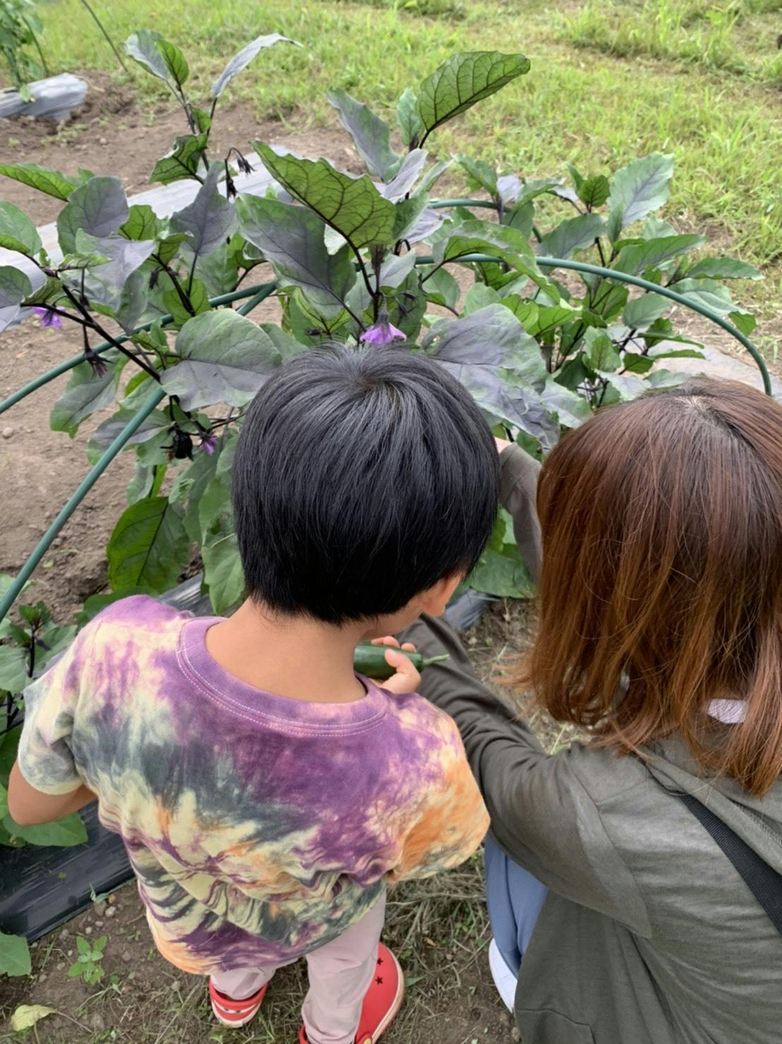 収穫の体験中の写真です。