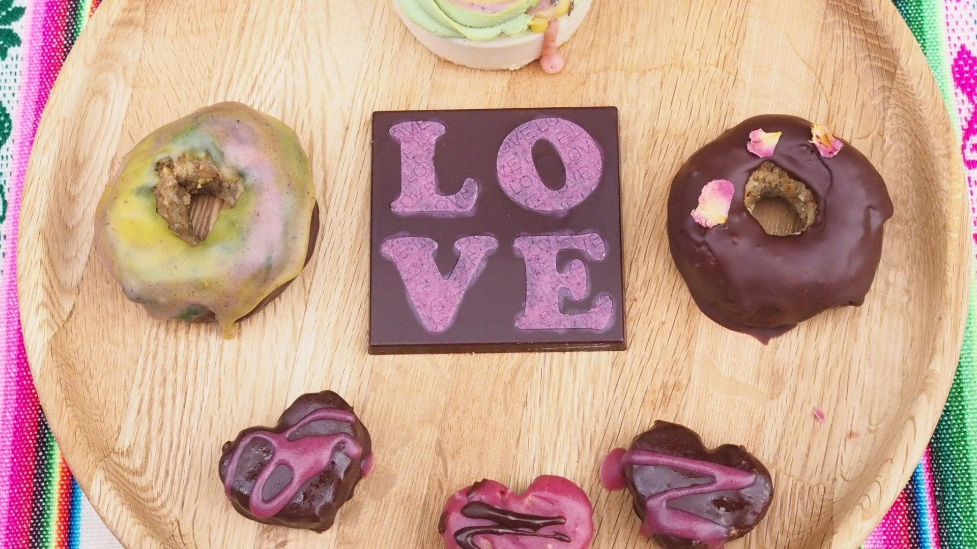 100%ナチュラルな植物性食品で色付けたローチョコレートです。