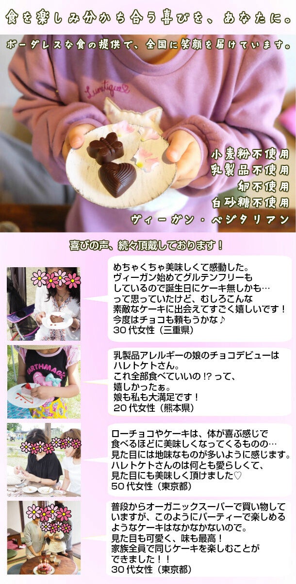 ハレトケトのケーキやチョコに出会えてよかった!と感激いただくことが多々あります。
