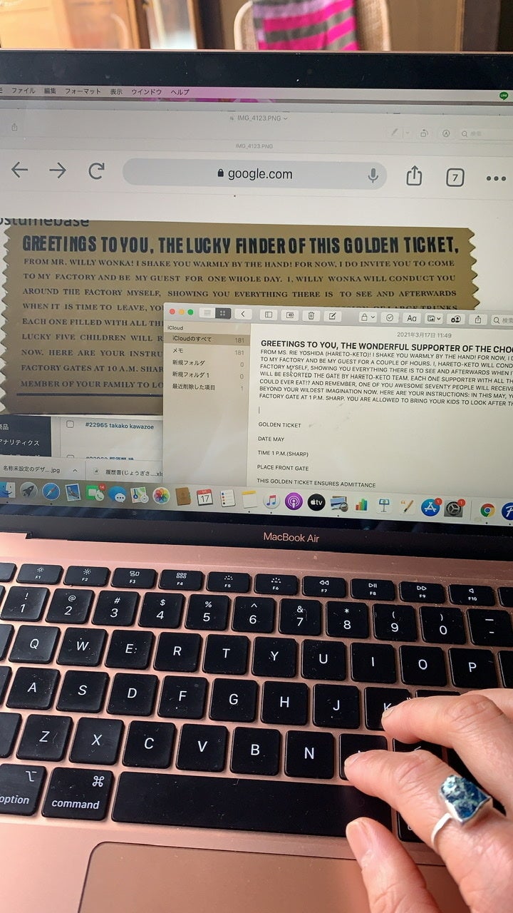 昨日、ゴールデンチケット(オープニングセレモニーの招待状)の文章を考えていました。