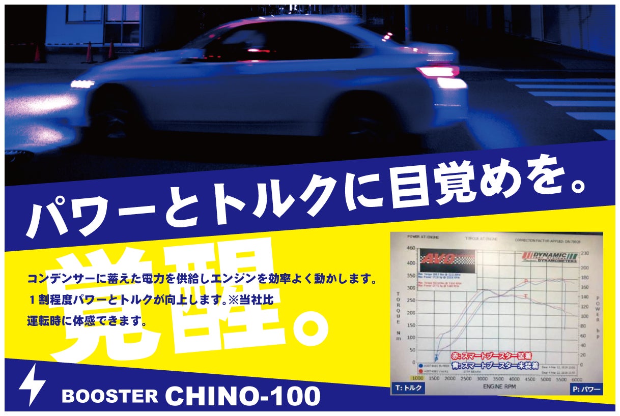 そんな要望をかなえる開発されたばかりの新製品スマートブースター【BOOSTER CHINO-100】の紹介です。