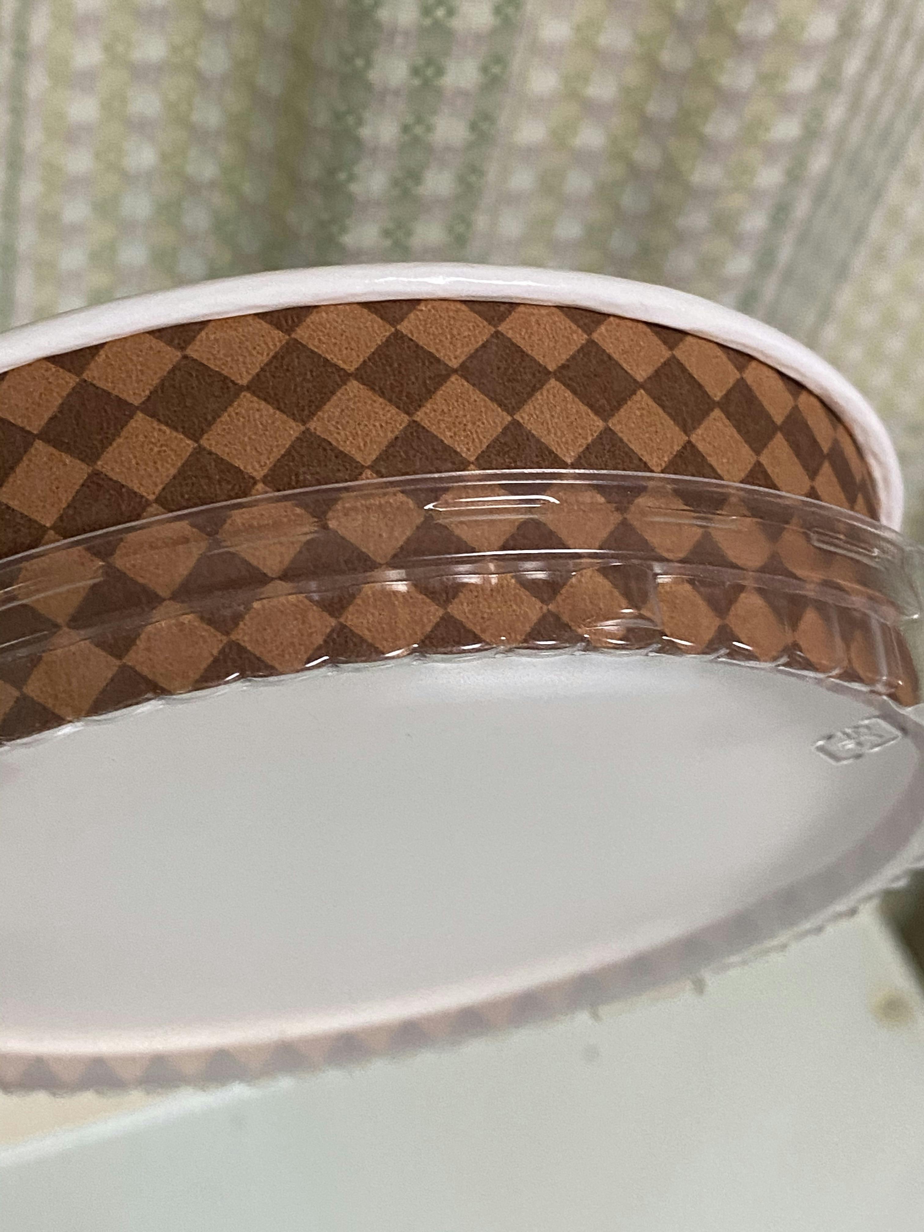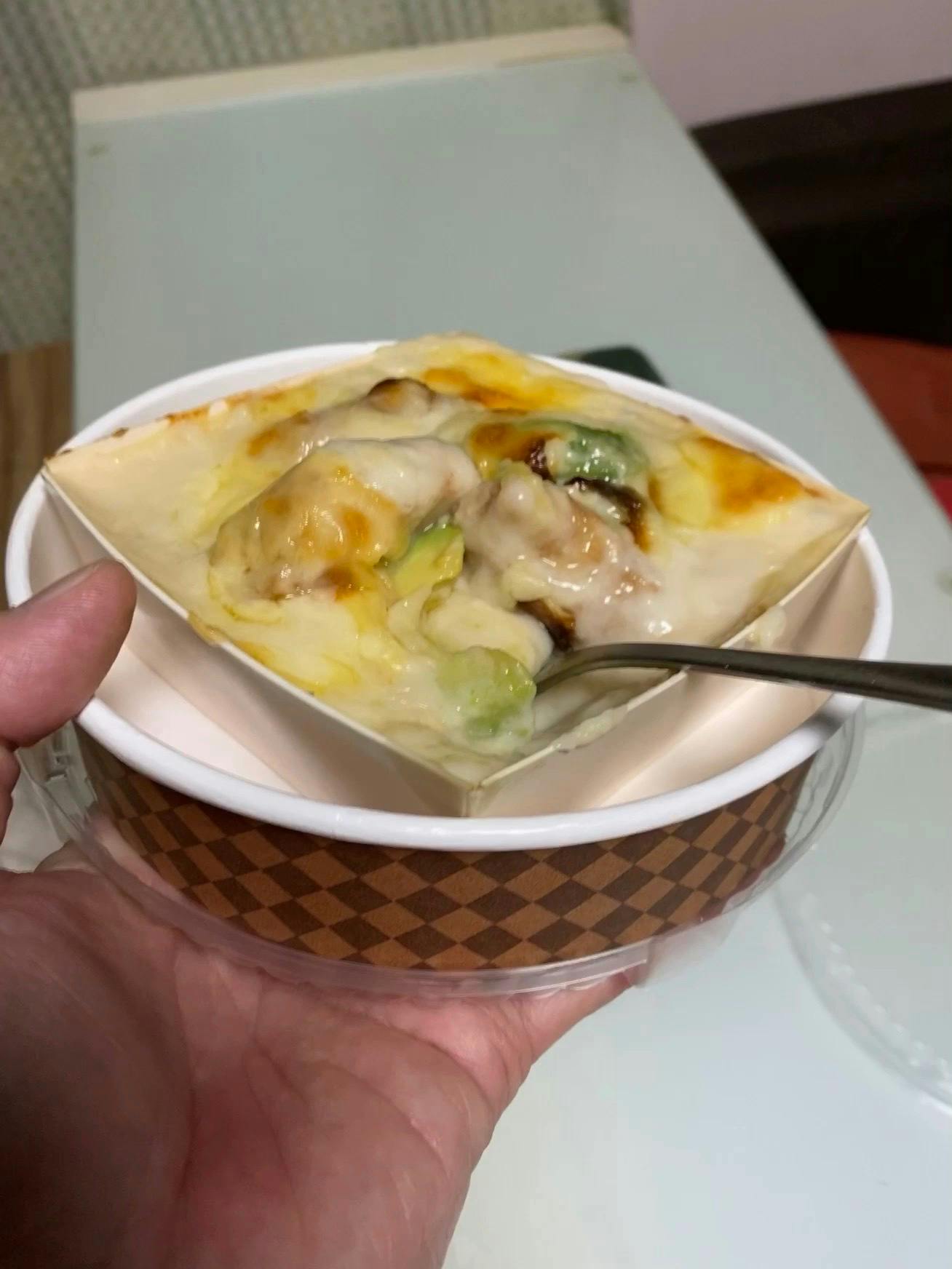特許はこのコンビニにもある丸いテイクアウト容器の底部分にあります。グラタンは写真のように四角い容器で熱々になったものを丸い容器の中に置いて提供させていただきます。(耐熱紙製容器を使用します)