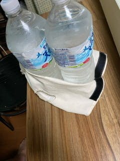内側に折り込んである持ち手を引き出すと、2ℓのペットボトルが2本入れられます。
