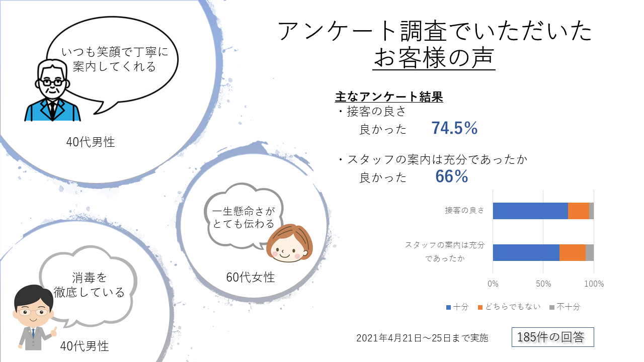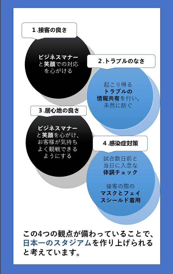 スタジアムでの接客に対するアンケートを実施したところ、このようなお声をいただきました!