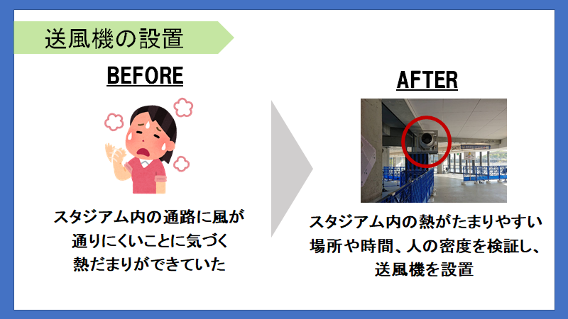 トラブルや改善点を振り返り、ガンバ大阪様に改善案を提出しています。