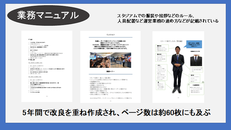 また、これまでの活動を業務マニュアルとして落とし込み明確にすることで、業務レベルの底上げを図っています。