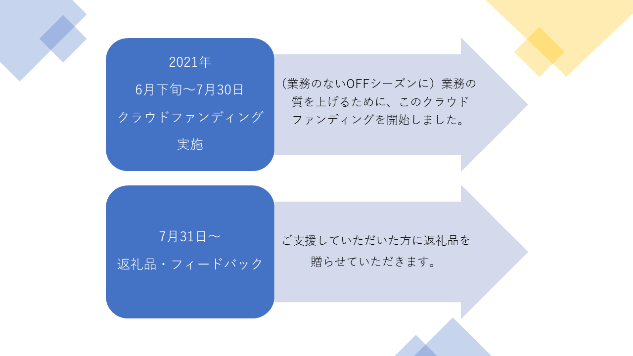 ※支援確定後の日程の変更はできかねます。予定をご確認の上、支援宜しくお願いいたします。