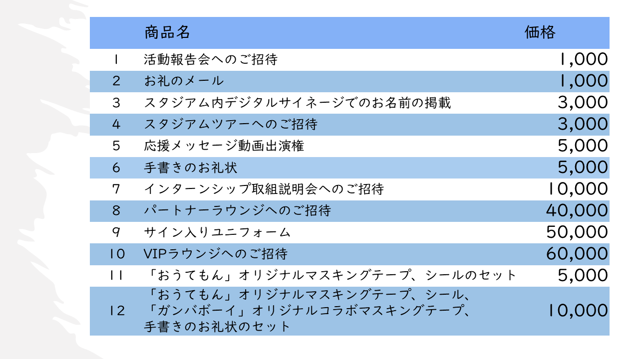 ・パナソニックスタジアム吹田のデジタルサイネージにて、支援者様のお名前を掲載させていただきます。