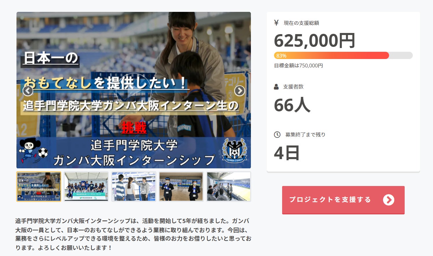 現在の状況としましては達成率83%、目標金額達成まで残り125,000円となっております!