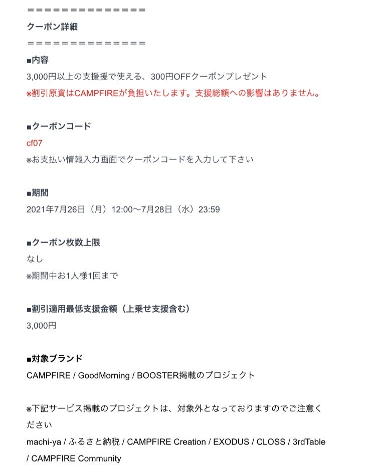 また、3,000円以上のご支援でお使いいただける300円OFFクーポンが、7月28日(水)の23時59分まで配布中です!